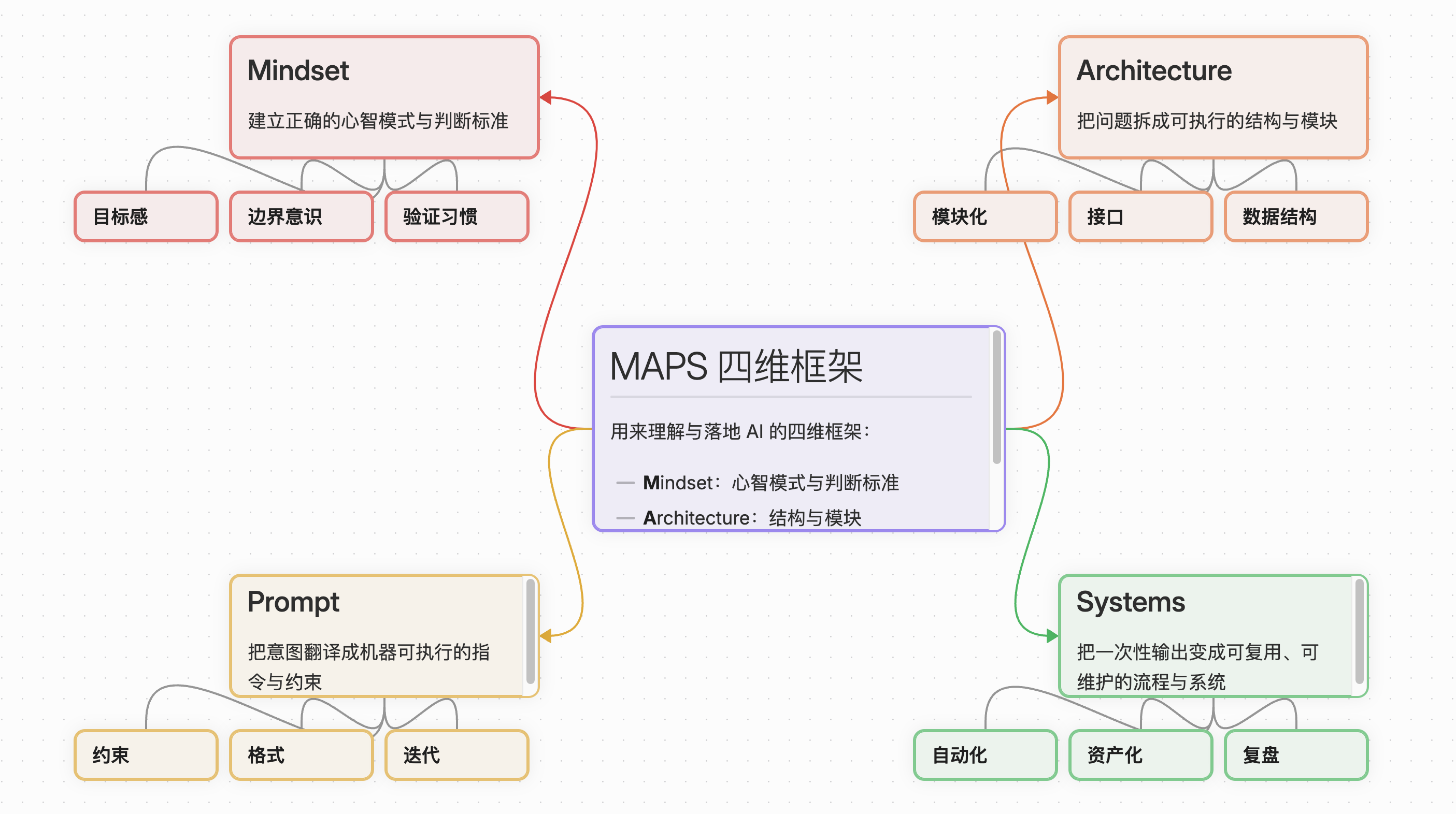 这一套打法,其实是我 MAPS 体系里「架构层」的一个落地演示:先定义系统,再选择工具。